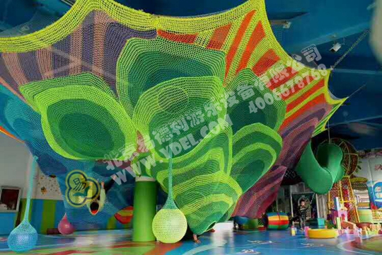 巨大的異形彩虹繩網,懸在空中占據空中大部空間,區別于彩虹樹設計直上直下,而是猶如一個大溶洞彩色熔....
