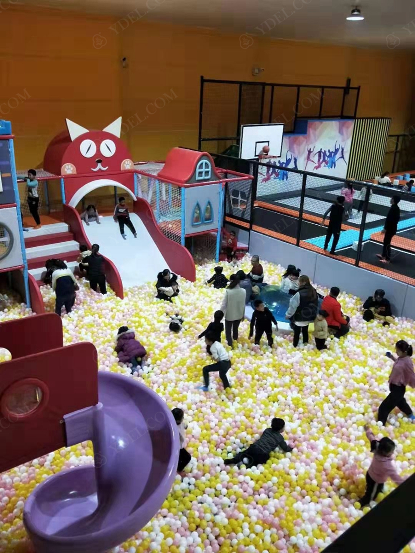 • 坐擁1300平米炫動空間,場內設有近800㎡的綜合性蹦床區,充滿歡笑的百萬海洋球區和驚險刺激的魔鬼滑梯,強健身心的忍者空間、歡樂繽紛的淘氣堡樂園、親子游樂區等。
