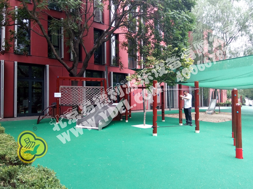 德國使館學校游樂設備根據游樂設備專業設計深化,把孩子和老師的設想真正落于實地,集合攀、爬、滑更是加入一定難度吊環單桿設備,充分達到孩子娛樂又鍛煉的特色。