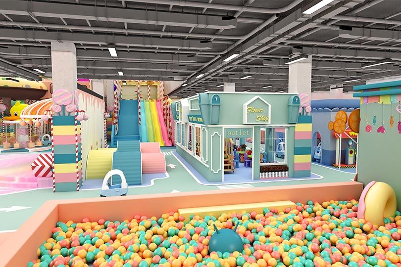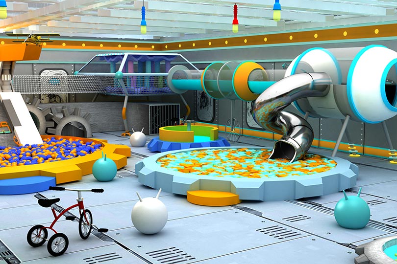 對于一些體驗類的兒童樂園來說這種主題是非常合適的,比如或交通城主題淘氣堡樂園、農場空間樂園、海洋樂園、太空主題淘氣堡等等